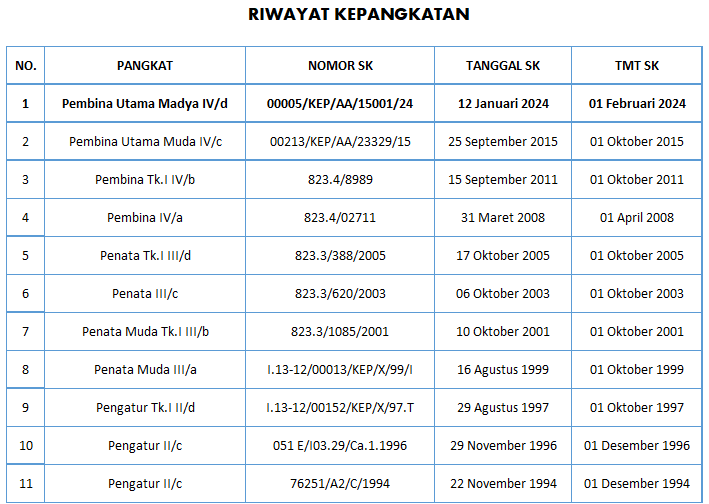 Pangkat/ Golongan : Pembina Tingkat I (IV/b)